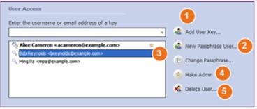 8. 按 [Add User Key..] 增加使用者的公鑰,或按 [New Passphrase User..] 增加使用者密碼。