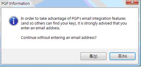 5. 如果你沒輸入 email 資料,這時會出現警告訊息。按 [Yes] 繼續。