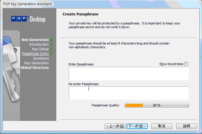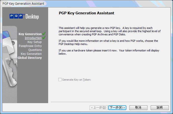 2. 出現 [PGP Key Generation Assistant] (金鑰產生精靈) 畫面。
