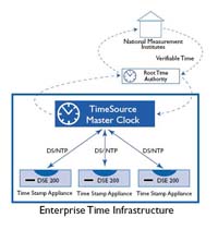 DSE200時戳設備可以有兩種不同的方式從TMC200取得時間,第一種方式是標準時間機構(UTC)可以使用TMC200來直接提供給任何時戳服務設備經由DS/NTP連線一個安全的校時與稽核服務;另一種方式是, 大型組織可以採用TMC200自行建立中央式的內部時間源,供應組織內多個DSE200時間,此方式適合於組織裡既有的時間取得的程序,TMC200可設定使用內部既有的時間源為其第一優先,有些組織可能需要定期與標準時間機構的校時與記錄,此內部時間源可以DS/NTP連線外部的信任時間機構以獲得校時來源為標準時間機構的證明。